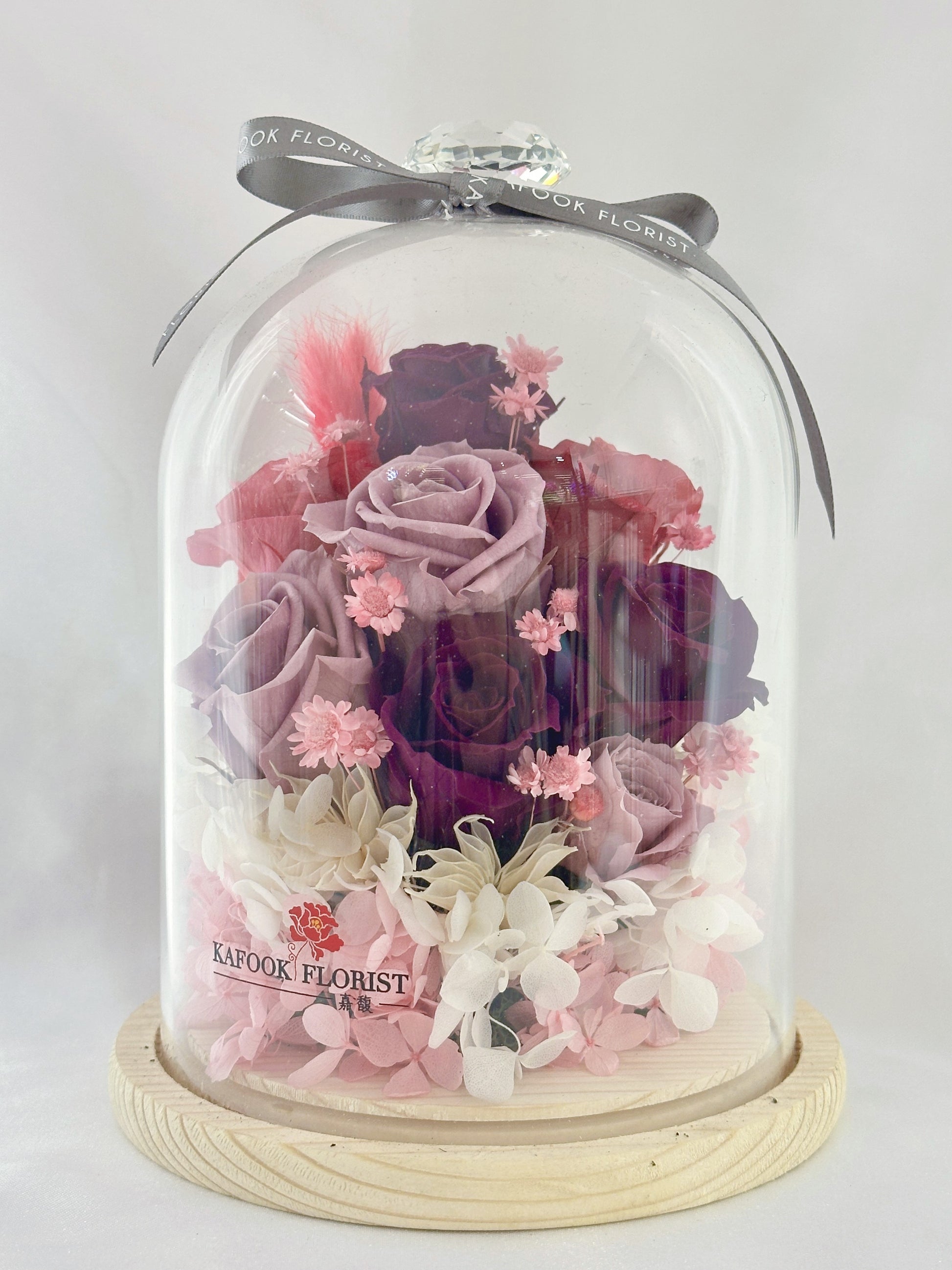 FG 004 保鮮花玻璃瓶木底款 紫色系
